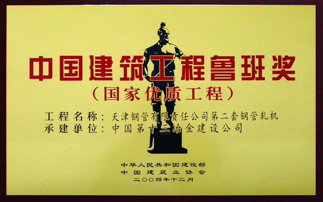 中国建设工程鲁班奖-天津钢管有限责任公司第二套轧机荣获
