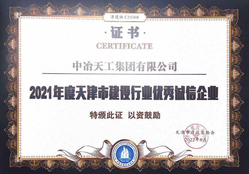2021年度天津市建设行业优秀诚信企业