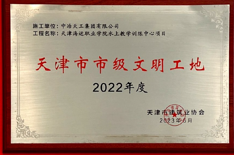 2023-119天津海运职业学院水上教学训练中心项目2022年度天津市市级文明工地(牌匾)