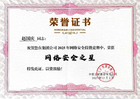 網絡安全是數字時代的“生命線”,更是企業穩健發展的基石。公司將以此次榮譽為契機,繼續秉持“技術驅動、安全先行”的理念,持續提升網絡安全技術保障能力、強化人才隊伍,筑牢安全屏障,為公司的數字化轉型與高質量發展貢獻力量。