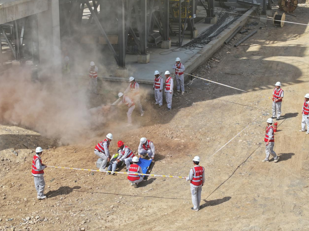 隨后,北方公司安監部聯合項目部開展了綜合應急演練,進一步檢驗了作業人員應急逃生和處置能力,切實做到“人人講安全、個個會應急”。住建局局長翟中強對本次綜合應急演練表達了肯定,對演練細節提出三點改進意見并對焦作西部商砼項目進行了下一步工作部署。